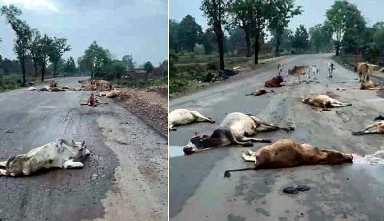 तेज रफ्तार वाहन की टक्कर से 17 गौवंशों की मौत, 4 घायल