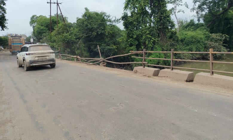 बांस जोड़कर बनायी गई है रेलिंग हादसे को सादर आमंत्रण दे रहा है सेतु निगम