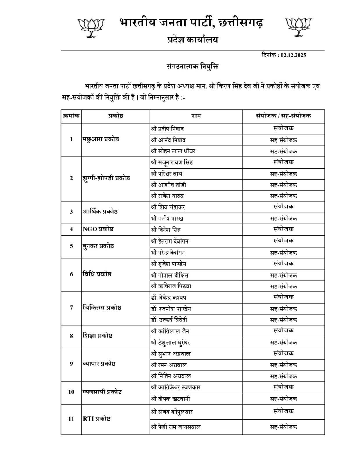 प्रदेश संयोजक बनाए जाने पर कार्यकर्ताओं ने मुख्यमंत्री विष्णु देव साय, प्रदेश अध्यक्ष किरण देव सिंह देव तथा संगठन महामंत्री पवन साय के प्रति आभार व्यक्त करते हुए कहा कि हेतराम देवांगन की मेहनत, सरलता और समर्पण ने उन्हें संगठन का मजबूत स्तंभ बनाया है।