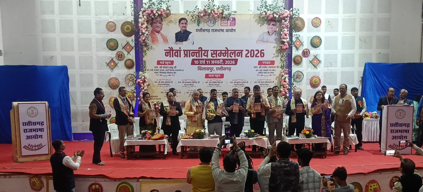 मंच से जांजगीर चांपा जिले के कवियों की प्रस्तुति पर सभागार में उपस्थित साहित्यकारों ने तालियों की गड़गड़ाहट के साथ उनकी हौसला अफजाई की छत्तीसगढ़ राजभाषा आयोग के तत्वावधान में आयोजित दो दिवसीय नौवें प्रांतीय सम्मेलन का समापन छत्तीसगढ़ी भाषा को भारत के संविधान की आठवीं अनुसूची में यथाशीघ्र स्थान दिलाने के दृढ़ संकल्प के साथ हुआ। सम्मेलन के दौरान विभिन्न विषयों पर गहन विचार-विमर्श हुआ, जिसमें छत्तीसगढ़ी की भाषाई समृद्धि, प्रशासनिक उपयोगिता तथा साहित्यिक परंपरा पर विशेष प्रकाश डाला गया। सम्मेलन के सातवें सत्र में “छत्तीसगढ़ी भाषा का स्थानीय बोलियों के साथ अंतर्संबंध” विषय पर केंद्रित चर्चा हुई। वक्ताओं ने बल दिया कि छत्तीसगढ़ की विविध स्थानीय बोलियाँ छत्तीसगढ़ी को और अधिक सशक्त एवं समृद्ध बनाती हैं। डॉ. सुधीर पाठक ने सरगुजिया, श्री रुद्र नारायण पाणिग्रही ने हल्बी तथा डॉ. ईशाबेला लकरा ने कुडुख भाषा की विशेषताओं एवं छत्तीसगढ़ी से उनके गहन संबंधों पर शोधपरक प्रकाश डाला। इस सत्र की अध्यक्षता डॉ. राघवेंद्र कुमार दुबे ने की, जबकि डॉ. विनय कुमार पाठक विशिष्ट अतिथि के रूप में उपस्थित रहे।